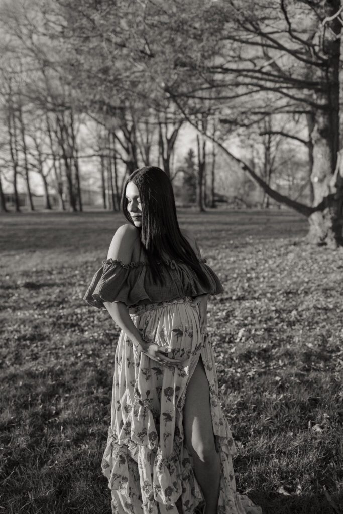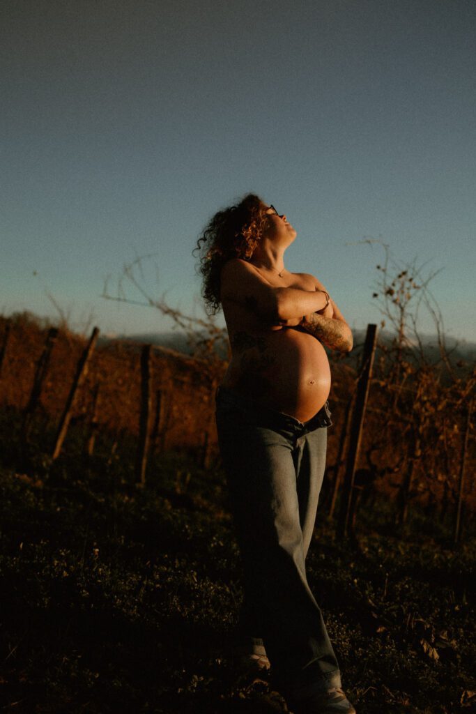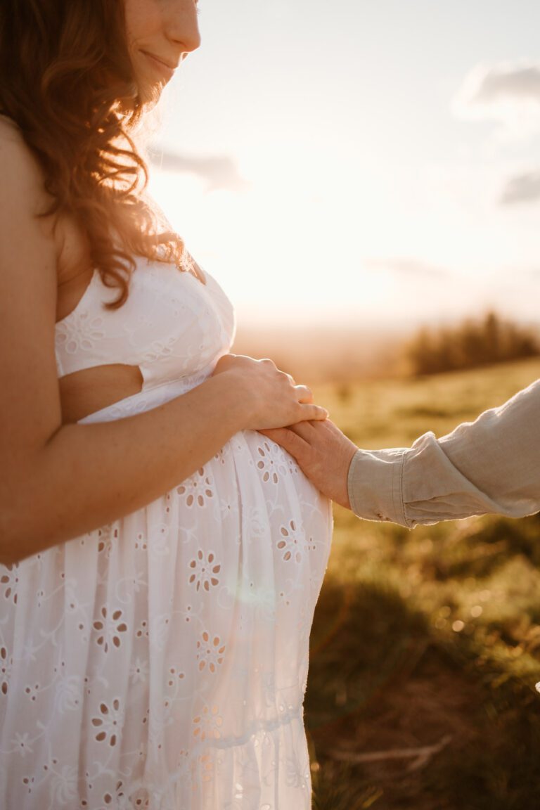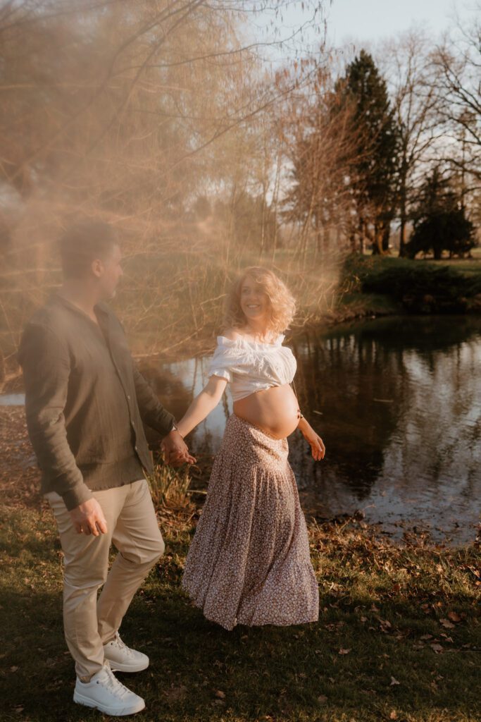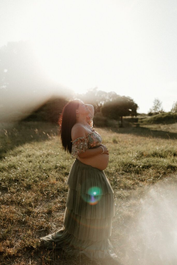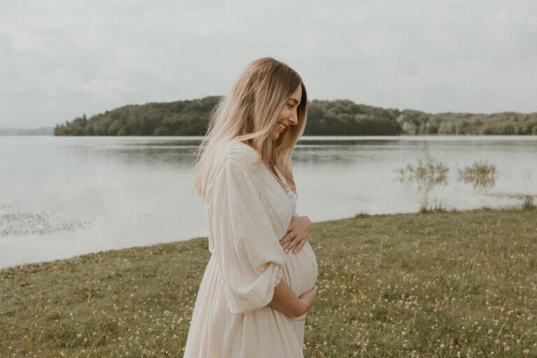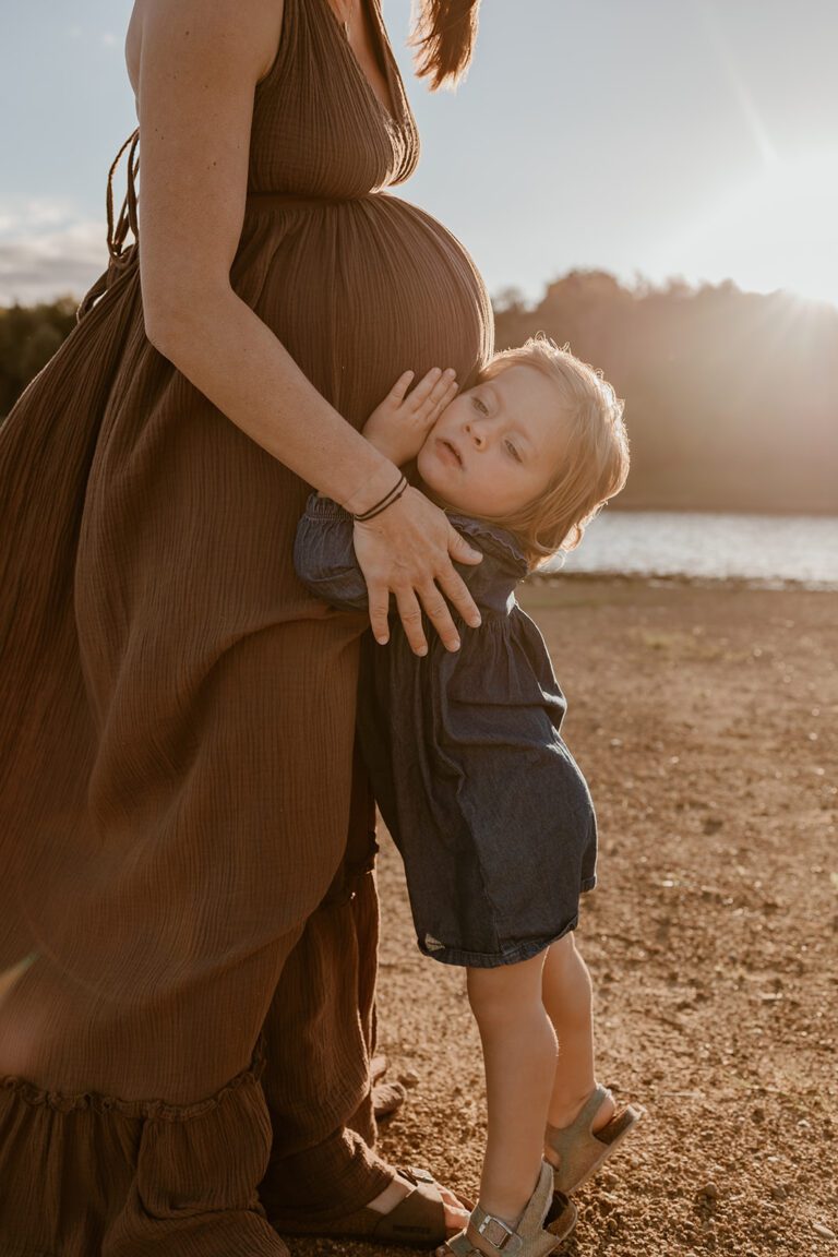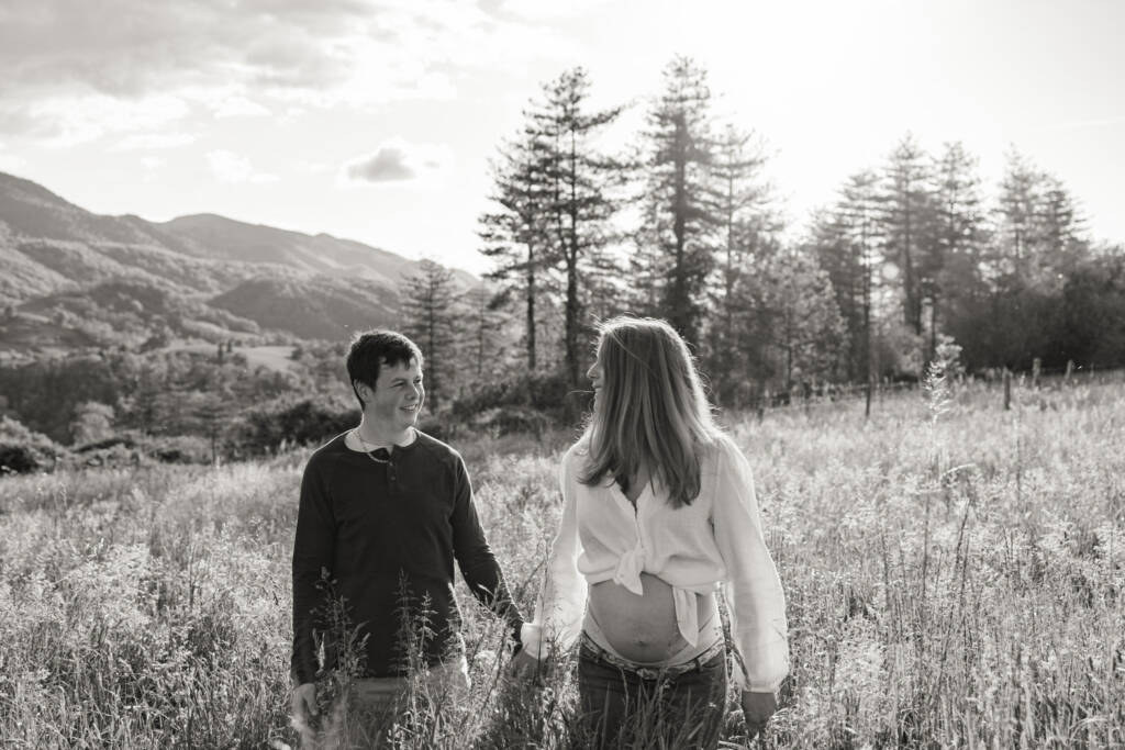 J’aime photographier la grossesse en extérieur, dans une lumière douce et enveloppante, là où la nature offre un décor simple et vivant, et où l’émotion peut s’exprimer librement.